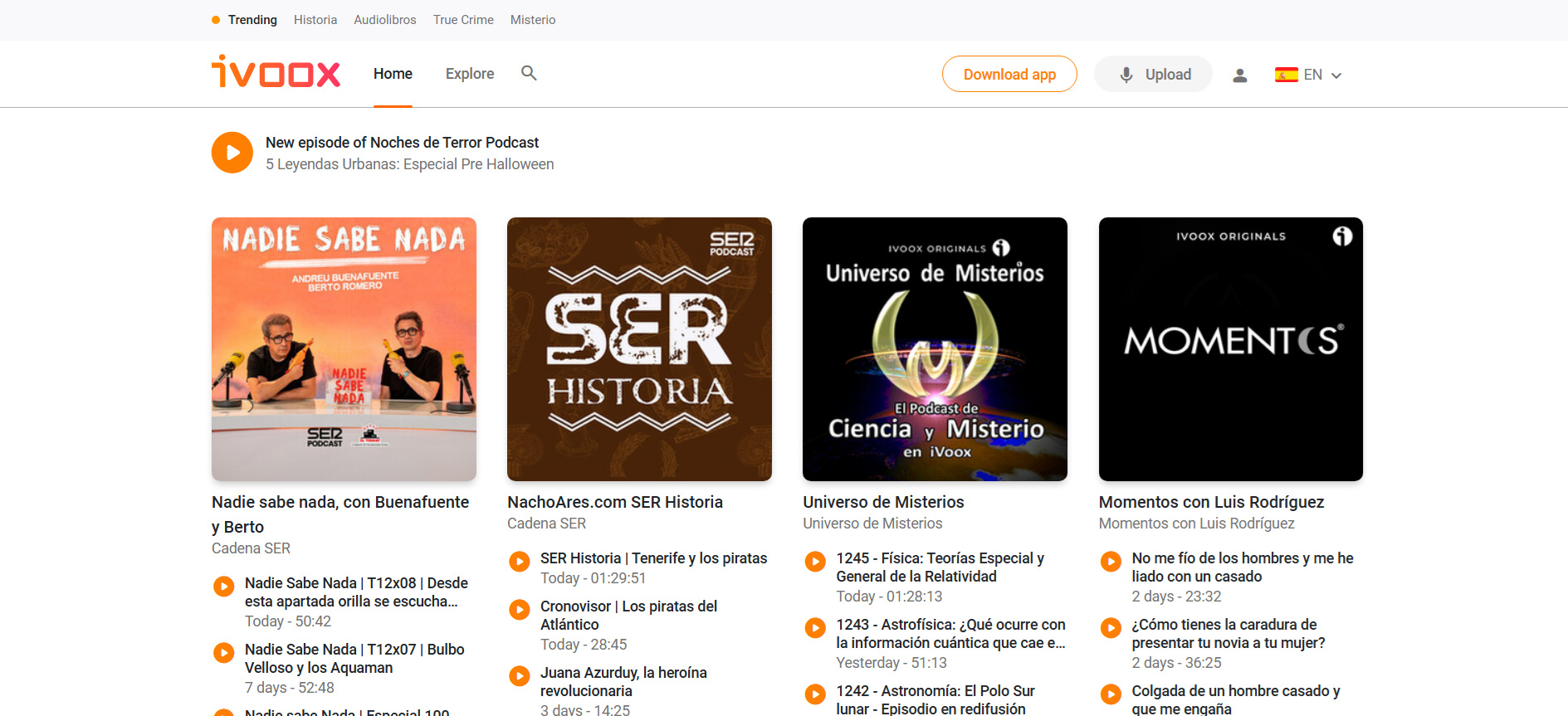 iVoox offers mainly Spanish-speaking content and most of its users are based in Spain. The portal offers audio files free of charge, which can be accessed via the website or via an application for mobile devices. There is also the possibility of podcast creation, as long as you have your own account for the publication of content.