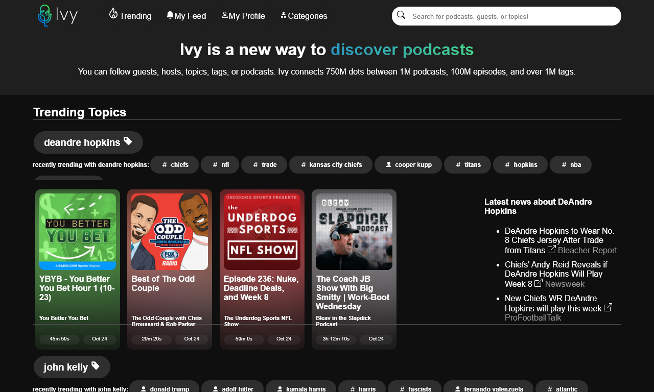 Ivy is a podcast discovery service that allows listeners to follow podcasts, guests, hosts, and topics. Ivy has over 1 million podcasts, 1 million tags, 75 million episodes, and 500 million relationships between episodes and tags. Ivy was born out of a frustration with traditional podcast platforms.