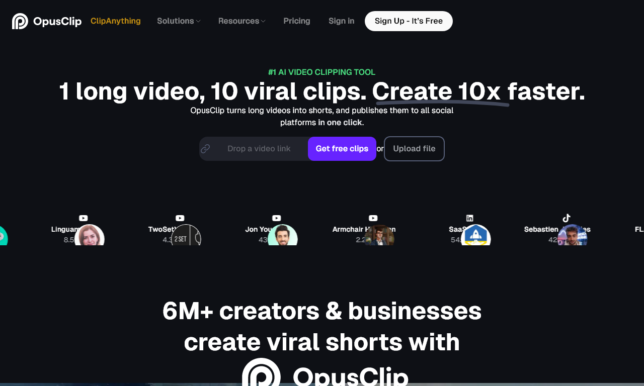 Opus Clip is a must-have tool for content creators who want to get ahead of the game. With just one click, Opus Clip generates high-quality short clips that are perfect for YouTube Shorts, TikTok, and Instagram Reels.