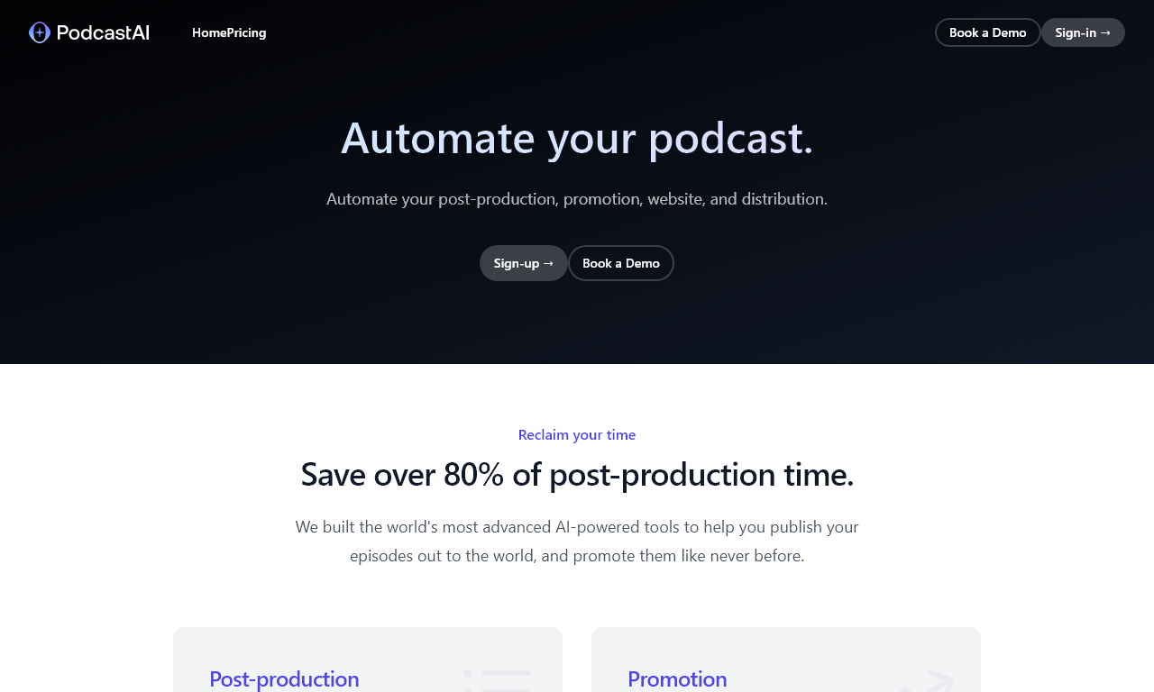 An AI-driven podcast creation platform, allowing creators and publishers to use state-of-the-art AI hosts to build content. Our goal is to revolutionize podcast production by automating the process and reducing the time and cost it takes to create an episode.